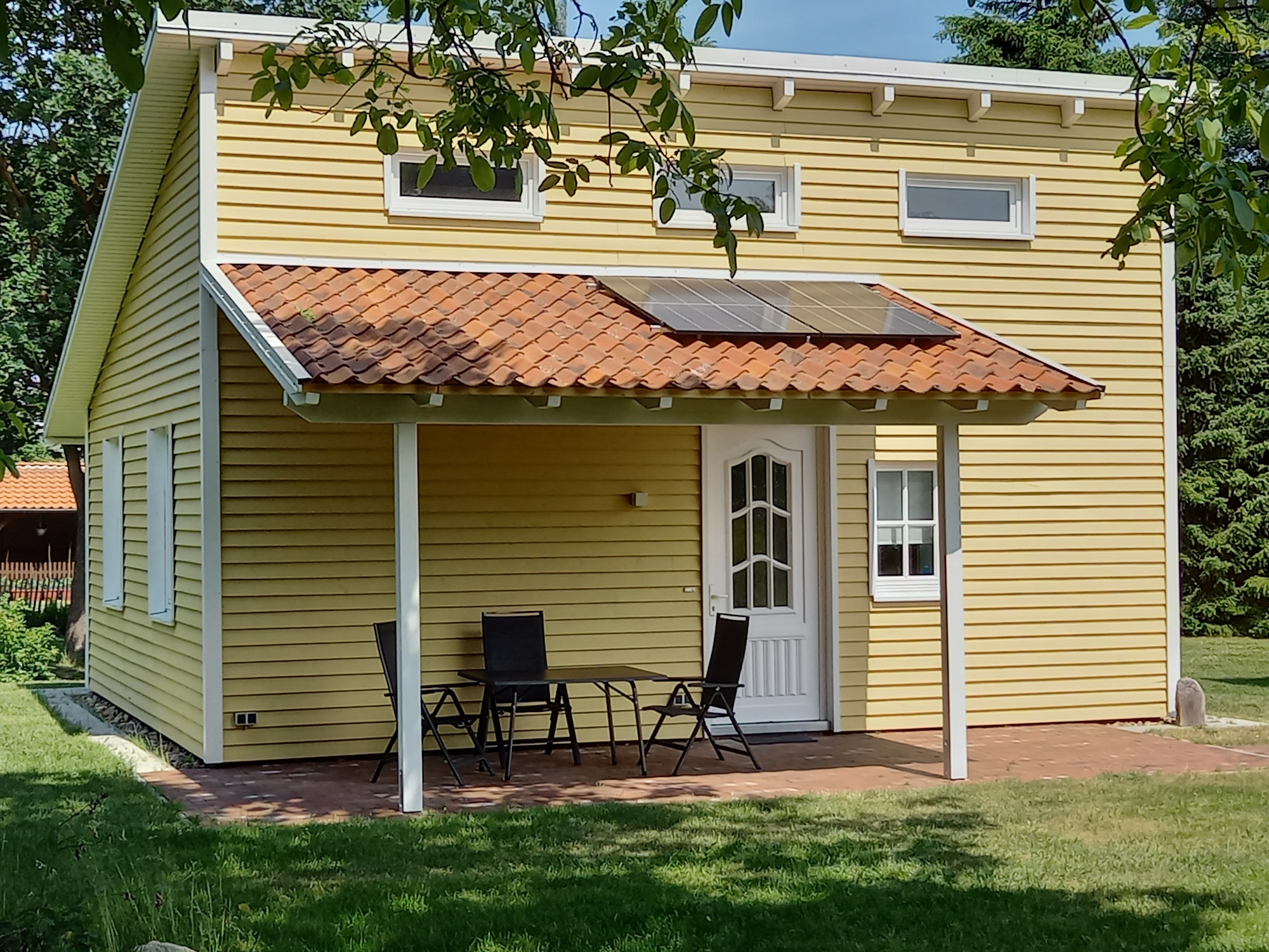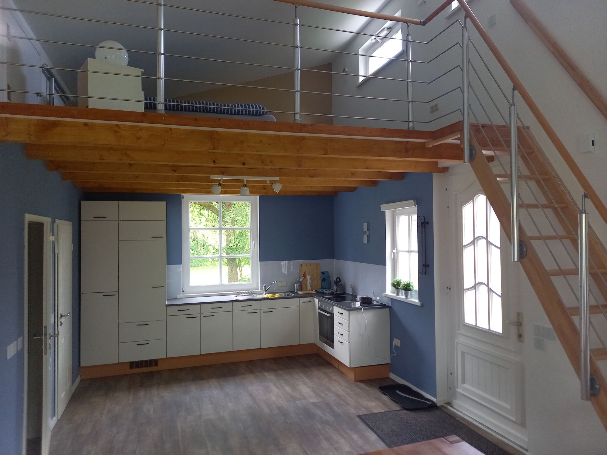 Das Haus hat eine Wohnfläche von ca. 50qm zzgl. Schlafboden. Neben dem offenen Wohnbereich mit Küchenzeile befinden sich noch Duschbad und Vorratsraum im Erdgeschoss. Der Schlafbereich befindet sich auf einer Empore mit Galerie zum Wohnbereich.