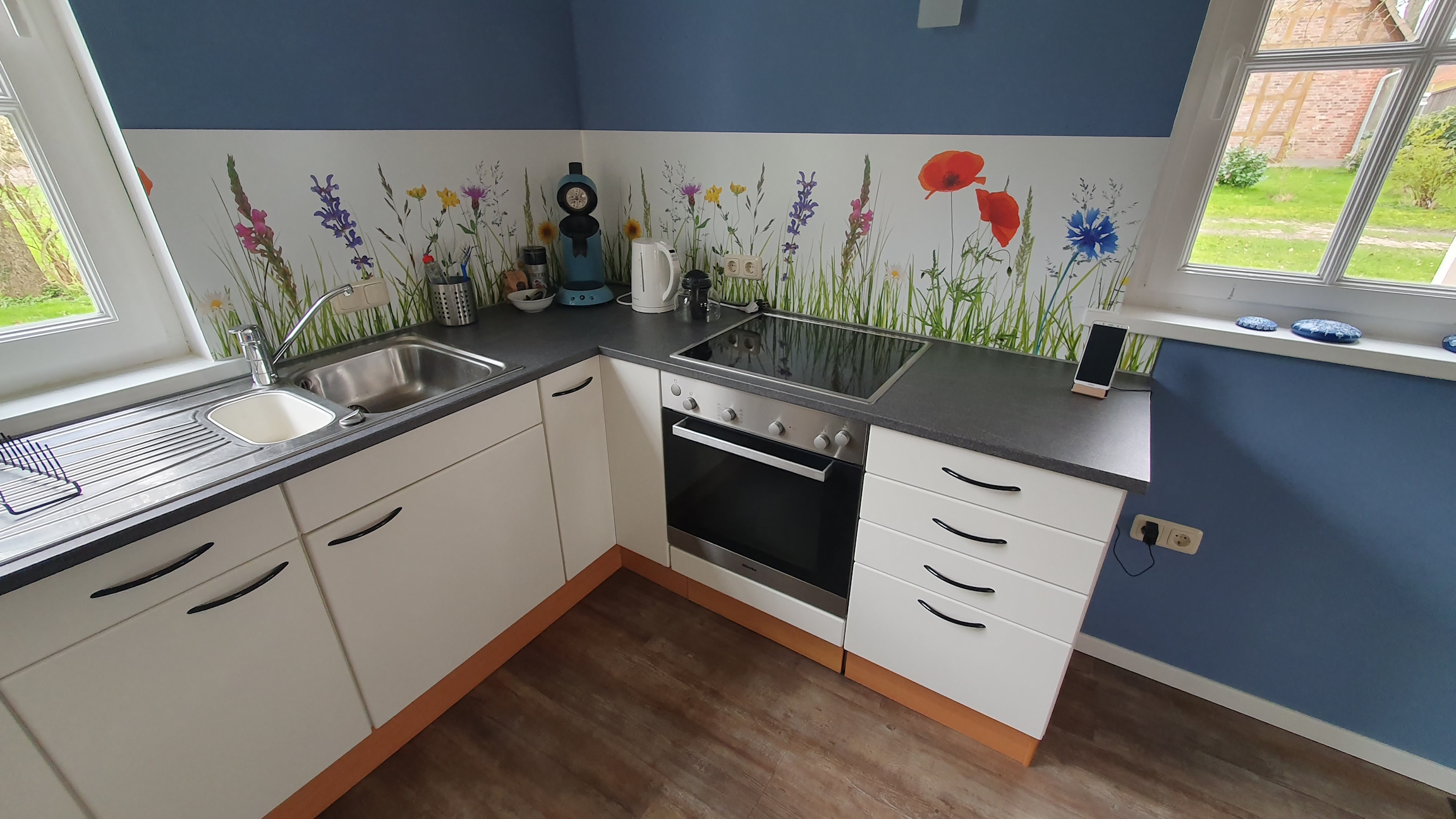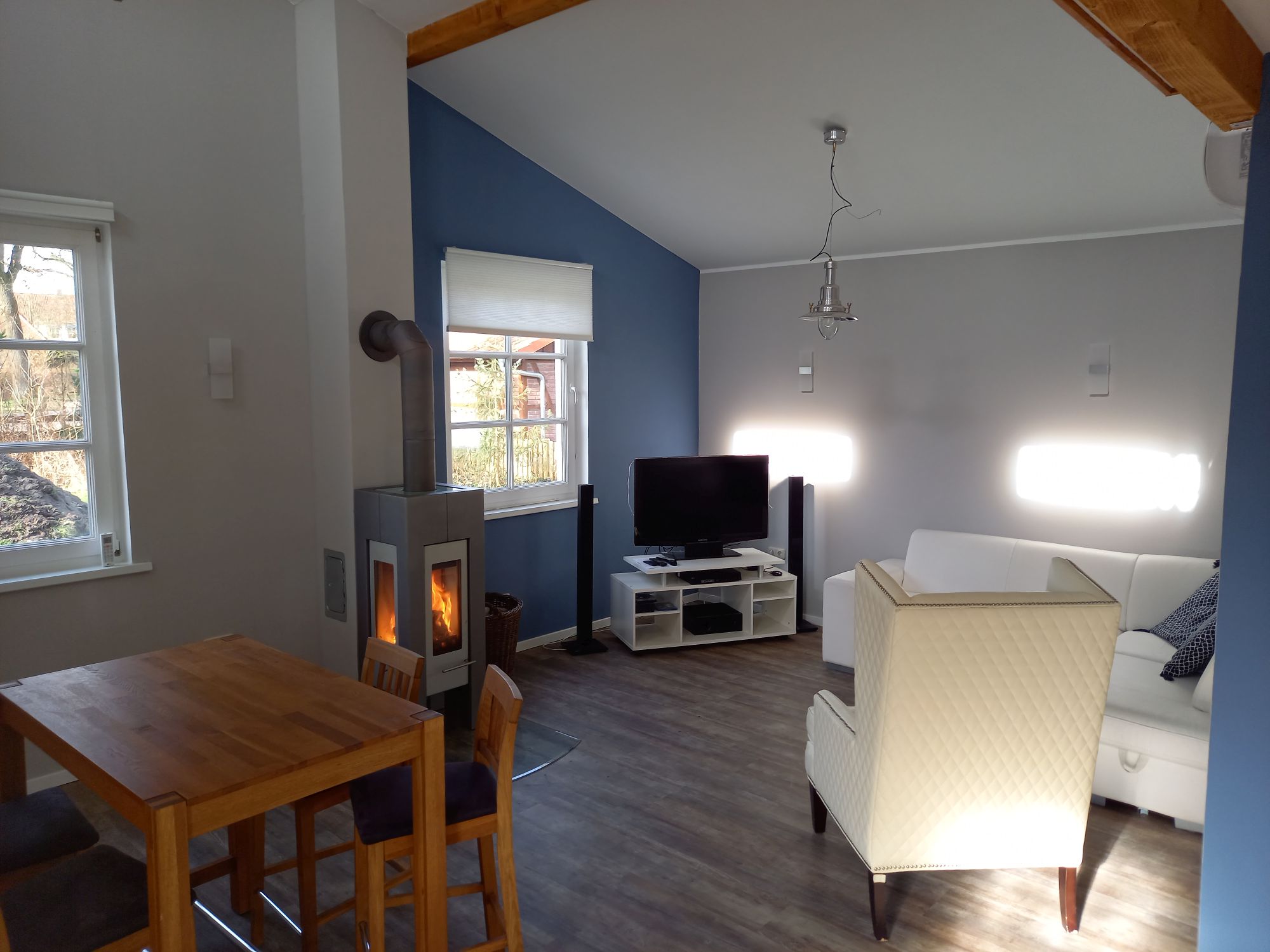 Die Wohnung ist ausgestattet mit WLAN, TV/Hifi, Küche mit Herd und Backofen, Kaffeepadmaschine, Toaster und Wasserkocher. Ein Kaminofen sorgt für gemütliche Abende.